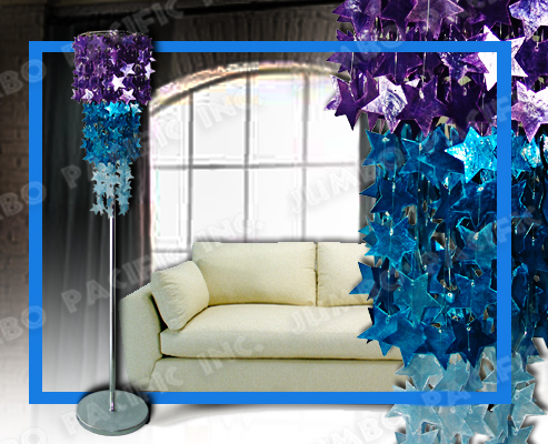 OPIS: 3 warstwa Capiz szczerbić się fiołek, błękitny i bławy w gwiazdowy kształt projekt z elektryczny dopasowanie.